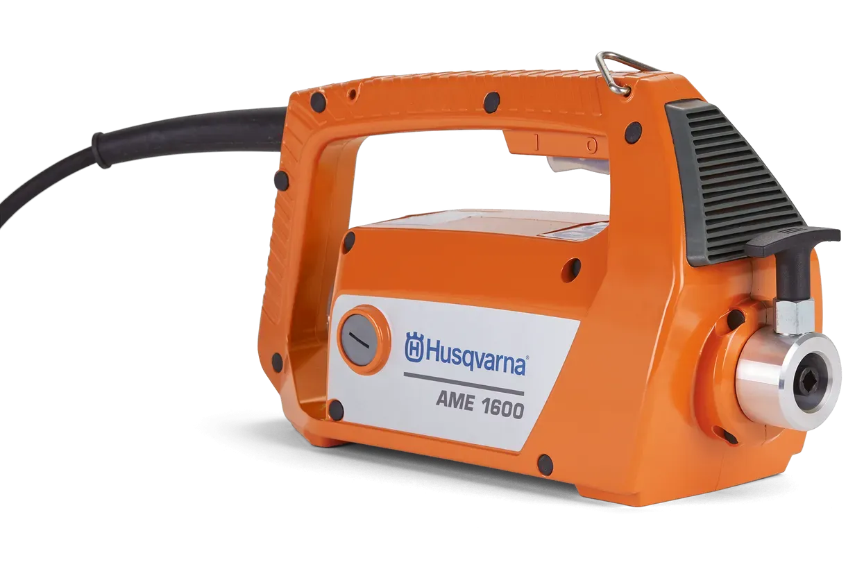 Husqvarna AME 1600 je visoko zmogljiva prenosna električna pogonska enota, zasnovana za vibracijske glave in gredi serije AT Flex Shaft. S svojo neposredno hitrostjo in močjo zagotavlja hitro pospeševanje, medtem ko visokokakovostne komponente in oljno mazanje omogočajo dolgo življenjsko dobo z minimalnimi stroški vzdrževanja.