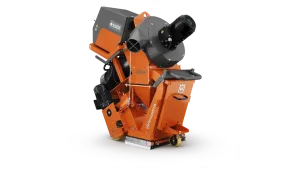 Priključek za sesalno cev premera 127 mm zagotavlja optimalno odsesavanje prahu, ko je povezan z ustreznim industrijskim sesalnikom Blastrac. Napreden pogonski sistem z nazivnim tokom 32 A omogoča natančno upravljanje in enakomerne rezultate peskanja.