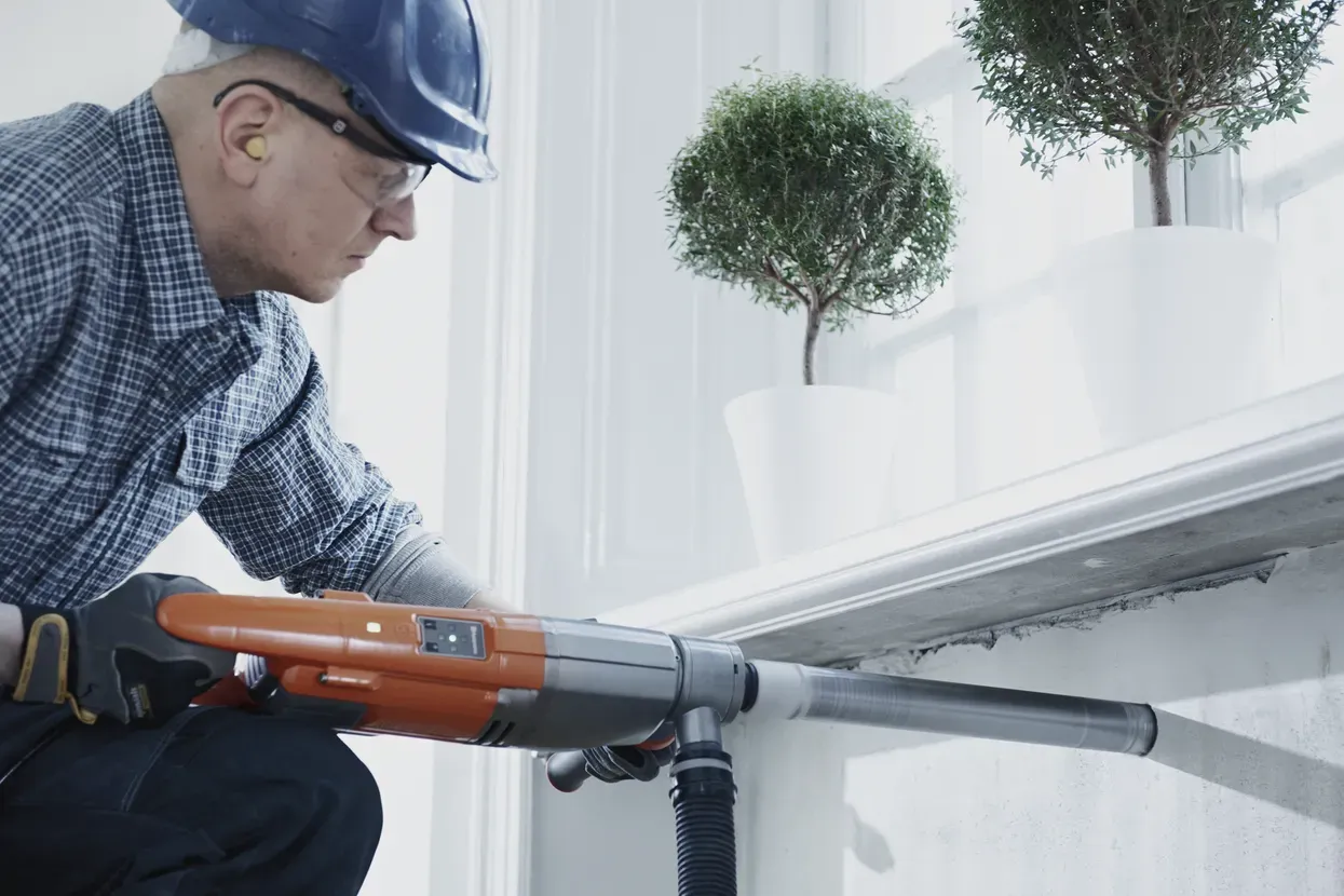 DM 220 omogoča tako suho kot mokro vrtanje z enostavnim preklapljanjem med načinoma. 360° nastavljiv sprednji ročaj zagotavlja optimalen ergonomski položaj pri različnih nalogah vrtanja. Stroj je zasnovan za udobno uporabo pri vrtanju v različnih položajih - vertikalno, horizontalno ali pod kotom, kar je idealno za vrtanje prezračevalnih kanalov in lukenj za cevi ter kable.