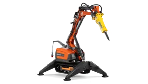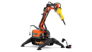 Robot se ponaša z več kot 20% povečano zmogljivostjo moči v primerjavi s predhodnimi modeli, kar zagotavlja višjo produktivnost in učinkovitost na delovišču. Njegova 360 stopinj vrtljiva roka omogoča natančno pozicioniranje orodja brez potrebe po premikanju celotnega stroja, kar skrajša čas priprave in omogoča enostavno delo v omejenih prostorih.