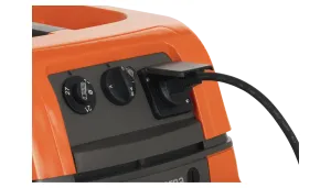 - Priključitev električnega orodja - Opremljen je s pomožno električno vtičnico za hitro in enostavno povezavo z ročnim električnim orodjem, kar omogoča takojšnje odsesavanje prahu med delom.
