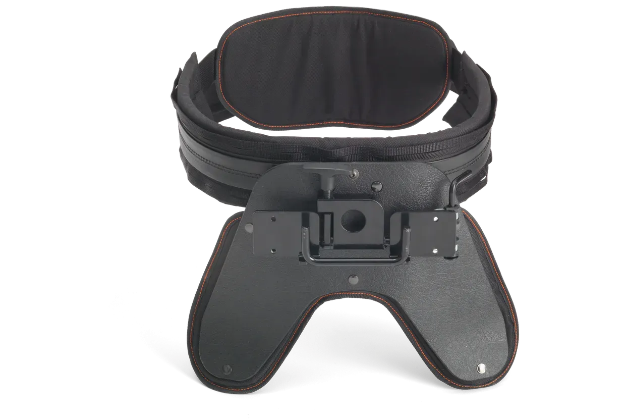 Pas omogoča boljšo mobilnost in svobodo gibanja na gradbišču, kar je še posebej pomembno pri zahtevnih projektih rušenja, kjer je potrebno natančno upravljanje robota. Z uporabo tega pasu imate roke proste za bolj precizno upravljanje, medtem ko je teža daljinskega upravljalnika optimalno razporejena okoli pasu.