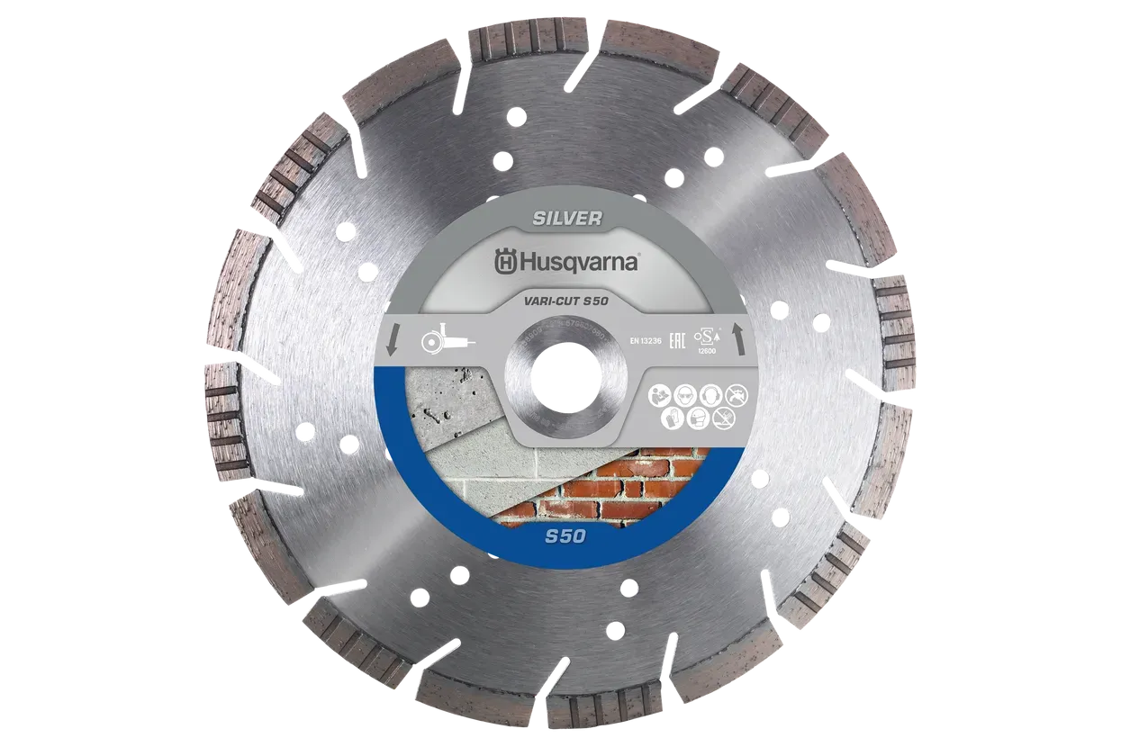 Husqvarnina segmentirana diamantna rezalna plošča VARI-CUT™ S50 je zasnovana za profesionalne uporabnike, ki potrebujejo zanesljivo orodje za različne gradbene materiale. Ta visokokakovostna rezalna plošča je na voljo v različnih premerih (115, 125, 150, 180 in 230 mm), kar omogoča prilagodljivost za različne velikosti kotnih brusilk.